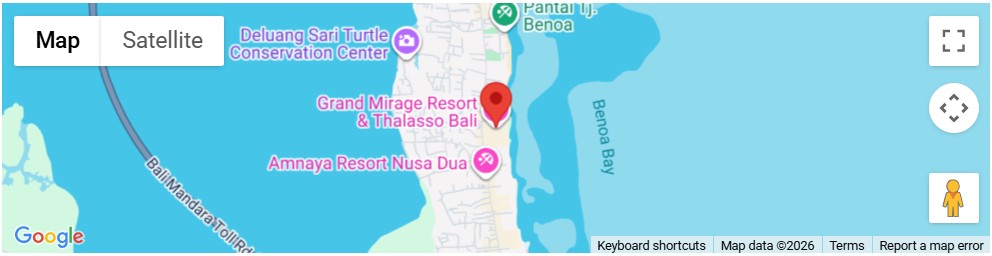 The Grand Mirage Resort & Thalasso Bali Spa is an upscale 5-star beachfront resort, aimed towards families, couples, and friends who want to experience stress-free Bali, Indonesia holidays. With its own private white sand beach, this all-inclusive resort is set on the picturesque Benoa Bay in the Nusa Dua region.